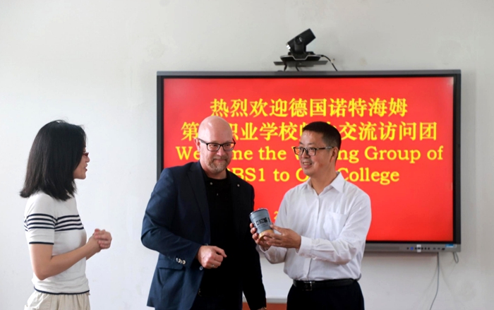 座談會(huì)上,李海軍校長對德國師生的到訪表示熱烈歡迎。他回顧了兩校自2009年締結(jié)友好關(guān)系以來,始終秉持開放包容、互學(xué)互鑒的精神,通過學(xué)術(shù)研討、師生互訪、技術(shù)交流等多種形式不斷深化合作,已成為中德職業(yè)教育領(lǐng)域交流合作的一個(gè)生動(dòng)縮影。他強(qiáng)調(diào),在中國大力推進(jìn)職業(yè)教育高質(zhì)量發(fā)展、深入實(shí)施“職教出海”戰(zhàn)略的背景下,該校高度重視國際化合作,期待雙方進(jìn)一步拓展在專業(yè)共建、師資培養(yǎng)與學(xué)生聯(lián)合培養(yǎng)等方面的合作空間,共同為中德職教發(fā)展貢獻(xiàn)更多務(wù)實(shí)成果。德國BBS1副校長Tammen Sven在講話中對理工學(xué)校的熱情接待表示衷心感謝,同時(shí)介紹了德國諾特海姆第一職業(yè)學(xué)校的發(fā)展近況,并提出了深化兩校交流合作的積極展望。會(huì)后,雙方還代表兩?;ベ?zèng)了禮物。